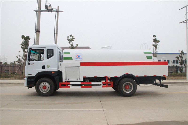 高壓清洗車加裝灑水裝置,安裝綠化灑水炮、前沖、后灑、側(cè)噴,可進(jìn)行綠化灑水、噴霧、壓塵、高壓沖洗路面,還可加裝吸污功能,集清洗、吸污于一體。它是用高壓水泵抽水罐里的水,排出的高壓水通過(guò)高壓膠管壓向噴頭。從高壓噴頭的孔向后噴出水的反作用使噴頭帶著膠管進(jìn)入下水道的深處;同時(shí)沖下水道中的污泥,使它隨著水流入下游沉井達(dá)到清污流通的目的。