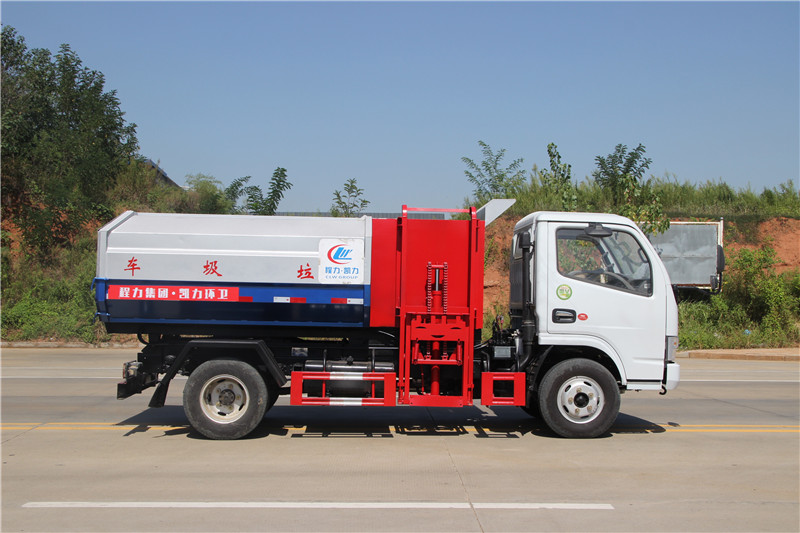 掛桶垃圾車 又名自裝卸式垃圾車, 由密封式垃圾廂、液壓系統(tǒng)、操作系統(tǒng)組成。舉升油制缸垃圾廂可自吊上放下,上下一次工作循環(huán)時(shí)間≤50秒。一輛車可配幾十個(gè)垃圾桶,實(shí)現(xiàn)一臺(tái)車與多個(gè)垃圾桶聯(lián)合作業(yè),循環(huán)運(yùn)輸,充分提高了車輛的運(yùn)輸能力,特別適用于短途運(yùn)輸,如環(huán)衛(wèi)部門對(duì)城鎮(zhèn)垃圾的清理、運(yùn)輸?shù)取?/span>