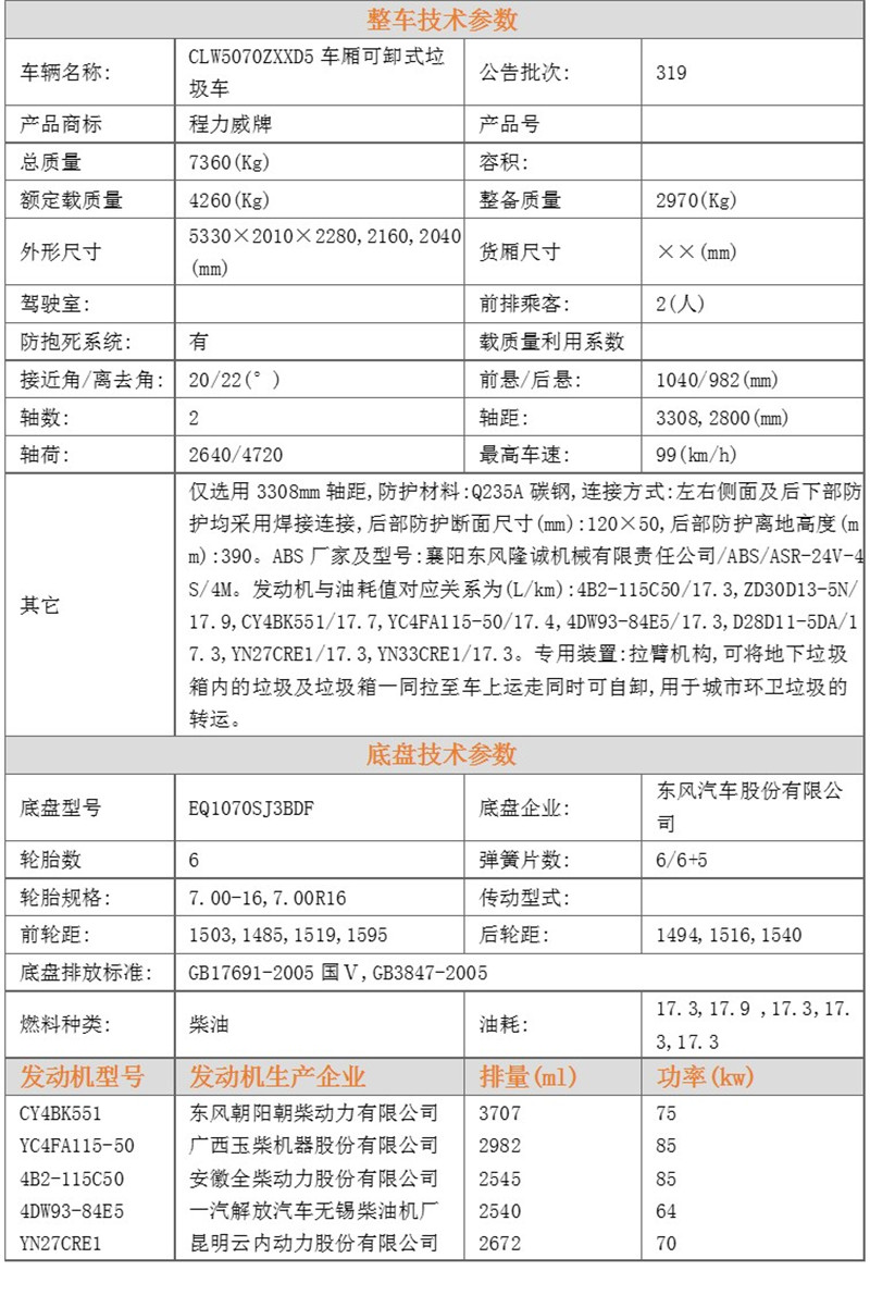 東風(fēng)小多利卡 5方掛桶垃圾車 售后服務(wù)說(shuō)明 | |