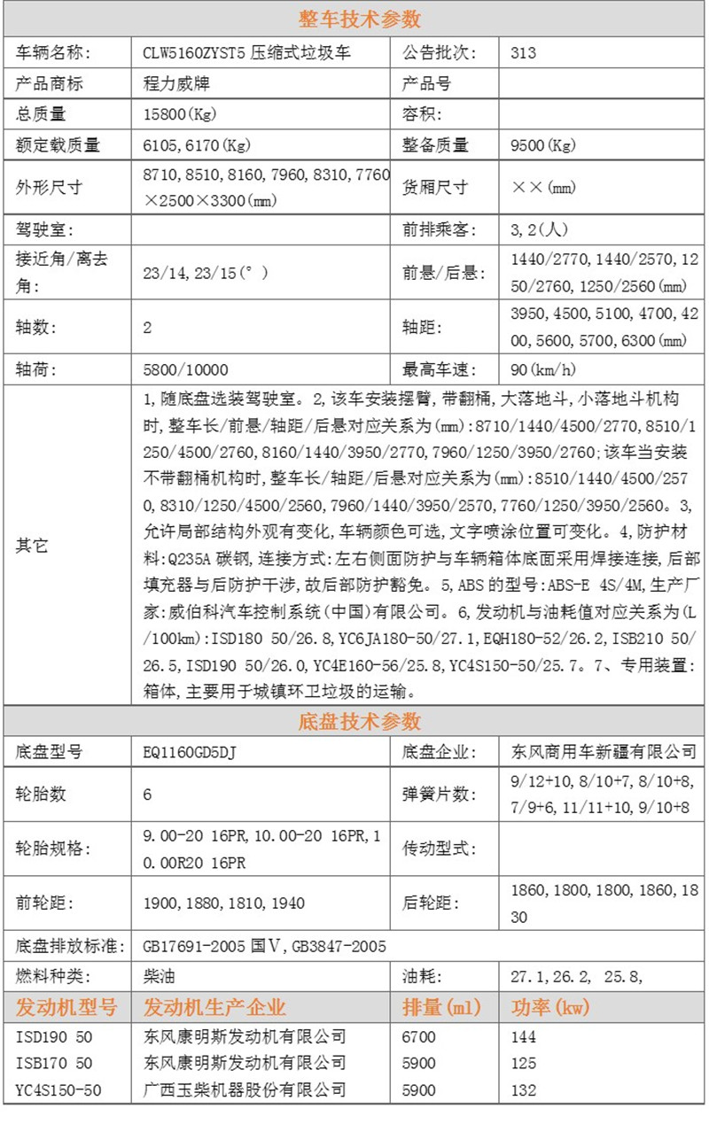 東風專底 12方壓縮垃圾車 售后服務說明 | |
