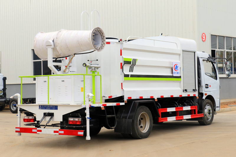 噴霧降塵車(chē),抑塵效果約為普通灑水車(chē)的30倍,一臺(tái)噴霧降塵車(chē)的工作直徑可覆蓋4個(gè)標(biāo)準(zhǔn)足球場(chǎng)。水箱中的水經(jīng)過(guò)霧化后,由高壓風(fēng)機(jī)噴出,水霧顆粒極為細(xì)小,達(dá)到了微米級(jí),其吸附力也增加了3倍,耗水量卻降低了70%,遭遇霧霾天氣、空氣質(zhì)量PM2.5嚴(yán)重超標(biāo)時(shí),進(jìn)行液霧降塵、可分解淡化空氣中的顆粒濃度、將飄浮在空氣中的污染顆粒物、塵埃等迅速逼降地面,達(dá)到清潔凈化空氣的效果。