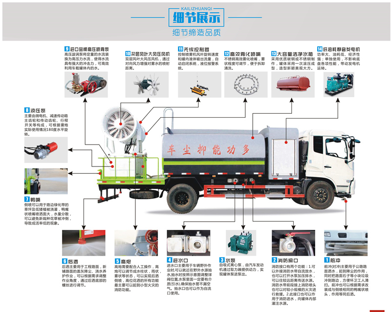 此款車(chē)型可以選裝50-100m多功能霧炮,專(zhuān)門(mén)用于城市開(kāi)發(fā)建設(shè)工地、拆遷工地、車(chē)站儲(chǔ)煤廠、洗煤廠、焦化廠、鐵礦、鋼廠、港口等等揚(yáng)塵風(fēng)沙控制,適合風(fēng)沙抑塵、工地降塵。拆遷降塵、城市霧霾降塵的專(zhuān)用車(chē)輛。