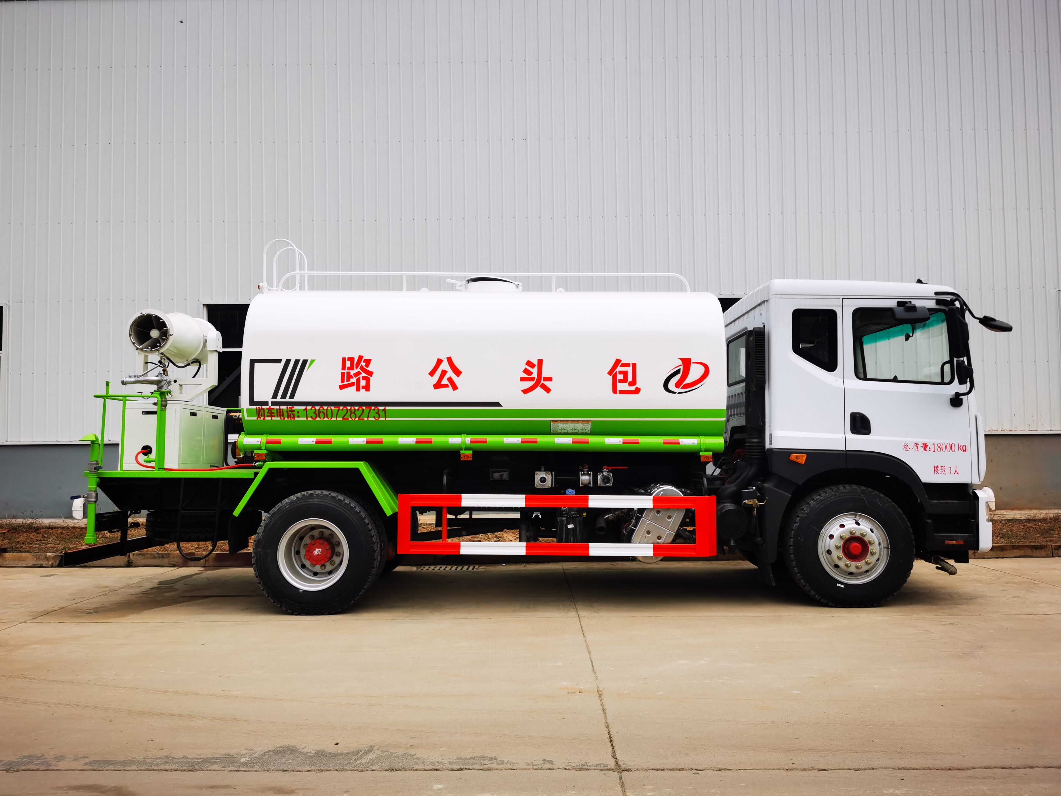 噴霧降塵車工作效率約為普通灑水車的30倍,工作直徑可覆蓋4個標(biāo)準(zhǔn)足球場。水箱中的水經(jīng)過霧化后,由高壓風(fēng)機噴出水霧顆粒極為細小,達到了微米級,其吸附力也增加了3倍,耗水量卻降低了70%,遭遇霧霾天氣、PM2.5嚴(yán)重超標(biāo)時,進行液霧降塵、可將飄浮在空氣中的污染顆粒物、塵埃等迅速逼降地面,達到清潔凈化空氣的效果。