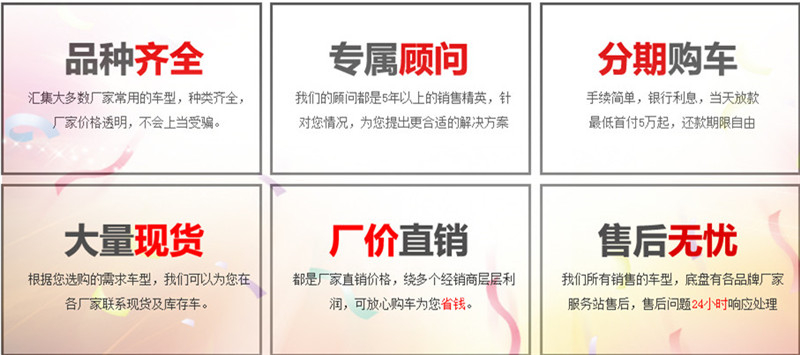 本廠常年儲(chǔ)備各類現(xiàn)車,預(yù)付定金即可發(fā)車,車到付全款,無(wú)憂售后,全國(guó)送車!