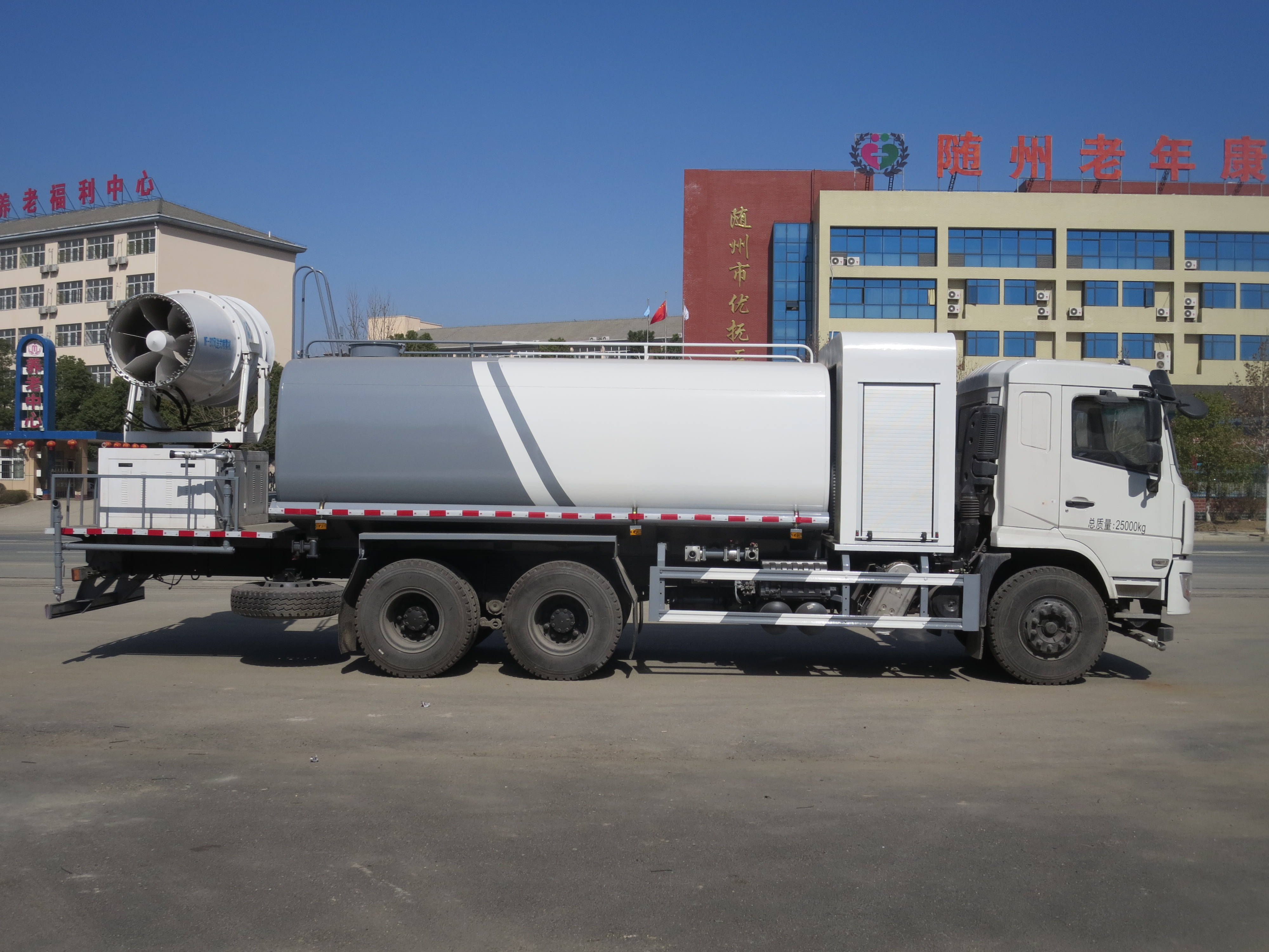 多功能抑塵車(chē),城市、工地、廠區(qū)降塵利器,工作效率約為普通灑水車(chē)的30倍,工作直徑可覆蓋4個(gè)標(biāo)準(zhǔn)足球場(chǎng)。水箱中的水經(jīng)過(guò)霧化后,由高壓風(fēng)機(jī)噴出水霧顆粒極為細(xì)小,達(dá)到了微米級(jí),其吸附力也增加了3倍,耗水量卻降低了70%,遭遇霧霾天氣、PM2.5嚴(yán)重超標(biāo)時(shí),進(jìn)行液霧降塵、可將飄浮在空氣中的污染顆粒物、塵埃等迅速逼降地面,達(dá)到清潔凈化空氣的效果。