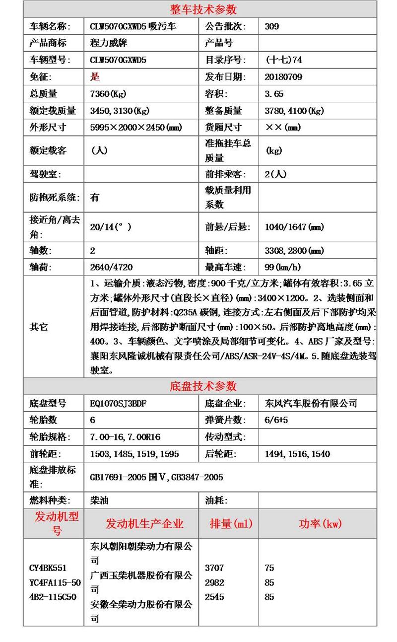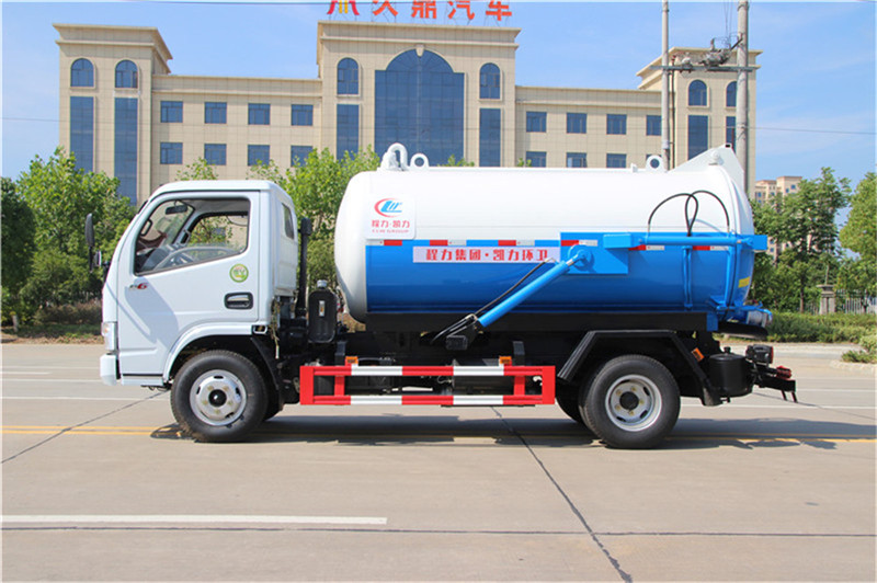 東風小多利卡吸污車罐體形狀為圓柱形,采用武鋼6mm厚優(yōu)質(zhì)碳鋼鋼板,罐體前部帶吸污窗,洗手裝置,舉升裝置,吸污管5米一根,罐體多種顏色選擇,其余按廠內(nèi)標準配置制作。隨車配置大功率真空吸污泵和優(yōu)質(zhì)液壓系統(tǒng),罐體封頭一次壓鑄成型、罐體可后開、雙頂自卸。罐內(nèi)污物可通過后蓋直接傾倒,具有真空度高(比吸糞車的吸力更大)、噸位大、效率高、用途更廣泛的特點。(垂直吸程:≥8 m,工作壓力:8500Pa,理論抽速:80L/S,軸功功率:≤8kw,進排氣口徑:50mm,抽滿罐時間:<5 min,排滿罐時間:<4min。吸污車采用大功率真空泵,一次壓鑄成型的封頭-,加厚的抗壓罐體,雙頂液壓系統(tǒng),是比吸糞車功能更強大的車型。