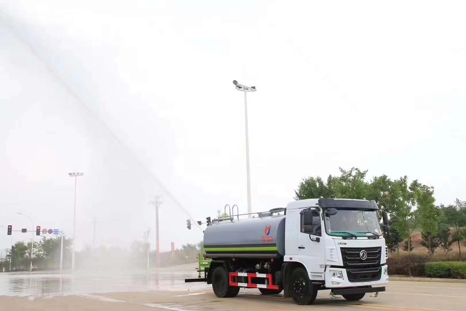 由發(fā)動機帶動變速箱,變速箱上安裝的取力器帶動灑水泵,灑水泵產(chǎn)生主要動力,將罐體內(nèi)部的液體通過管網(wǎng)噴灑出去。自吸高度:≤7m,灑水寬度:≥20m,最大射程:≥28m;可調(diào)節(jié)成柱狀,射程≥28m;也可調(diào)節(jié)成霧狀,射程≥5m。