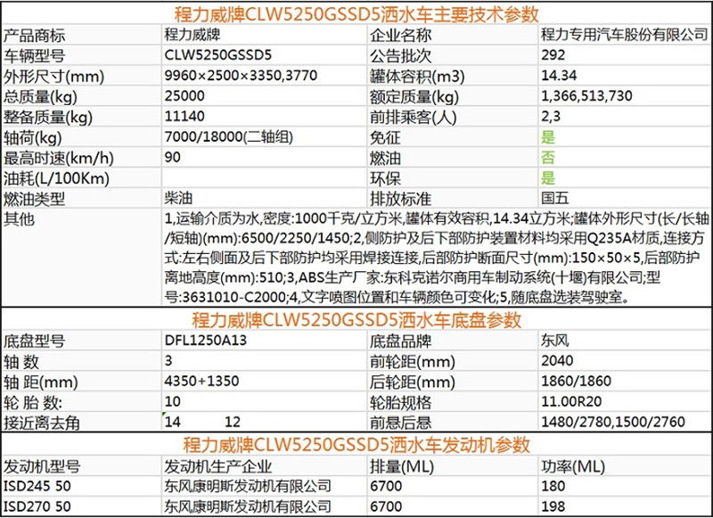 東風(fēng)天龍后雙橋21立方綠化噴灑車,采用的是東風(fēng)天龍后雙橋底盤,4350+1350mm軸距,可選擇康明斯245馬力或270馬力發(fā)動機(jī),(型號:ISD245 50 ISD270 50)大同7檔變速箱,11.00R20鋼絲胎,帶空調(diào),前橋7噸后橋10噸。