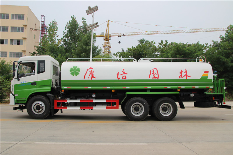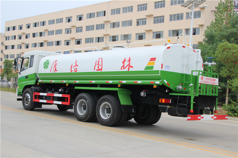 由發(fā)動機帶動變速箱,變速箱上安裝的取力器帶動灑水泵,灑水泵產生主要動力,將罐體內部的液體通過管網噴灑出去。自吸高度:≤7m,灑水寬度:≥20m,最大射程:≥28m;可調節(jié)成柱狀,射程≥28m;也可調節(jié)成霧狀,射程≥5m。