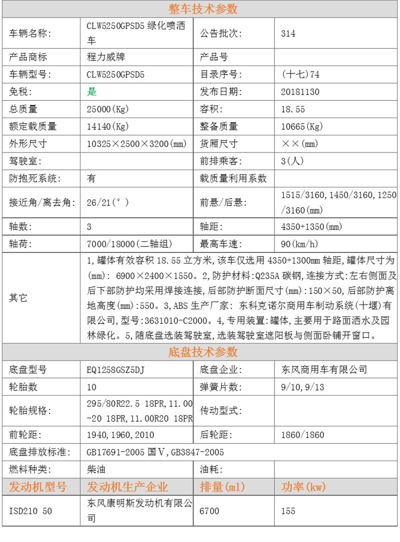 東風后雙橋 21方灑水車 售后服務說明 | |