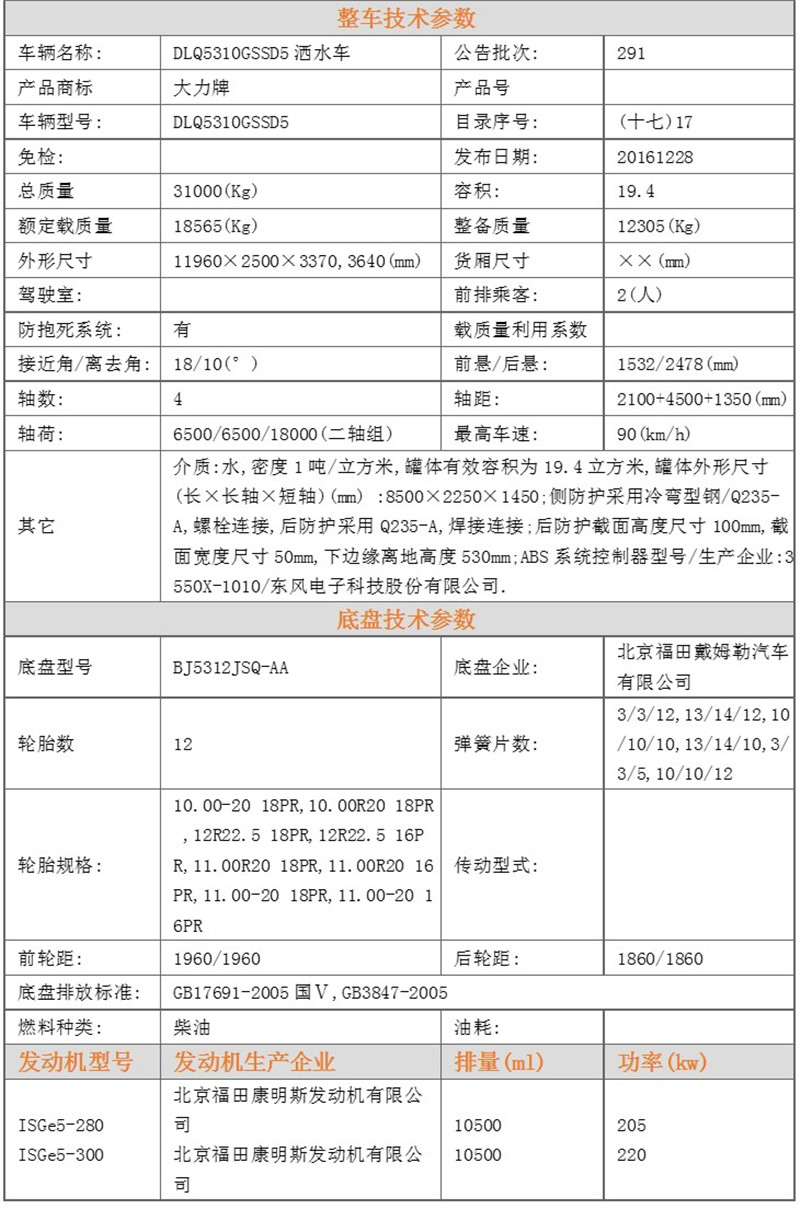 前噴后灑,前裝有鴨形噴嘴或圓頭沖嘴,后面裝有圓柱開(kāi)灑水噴嘴或蓮蓬頭噴嘴,后部有一工作平臺(tái),裝配有高壓水炮。后部還可裝8個(gè)噴嘴(選裝)噴水器一般用于沖洗街道。