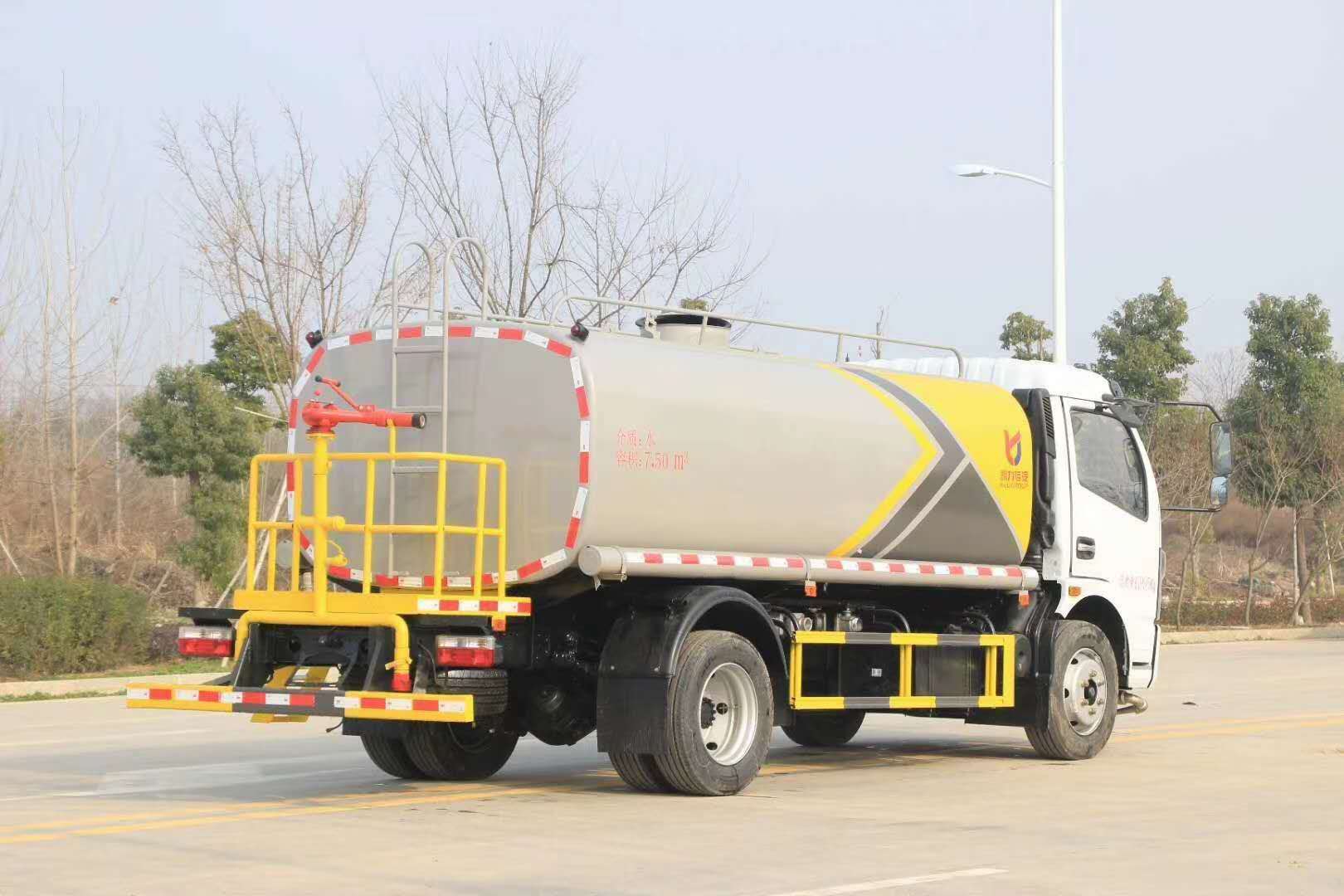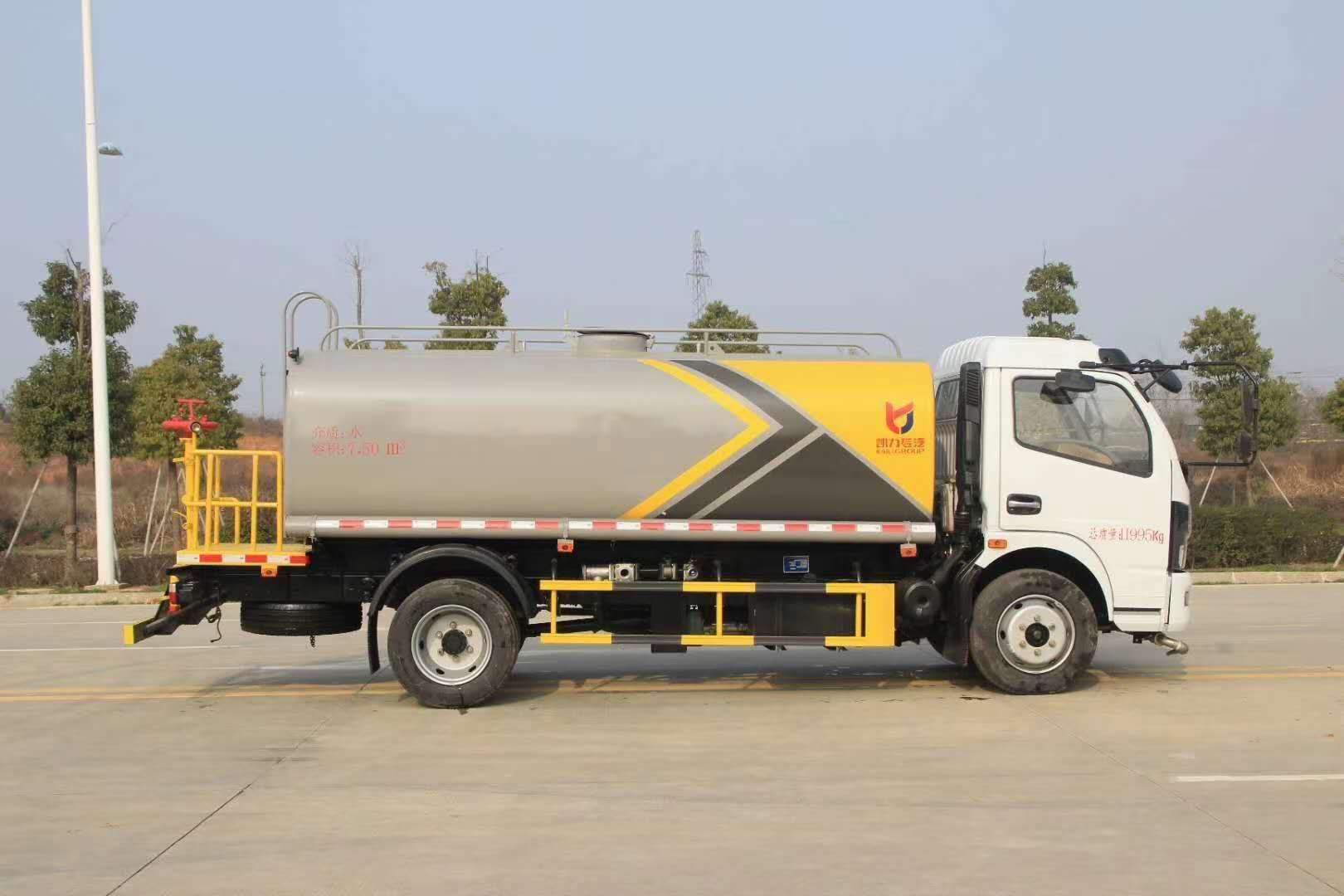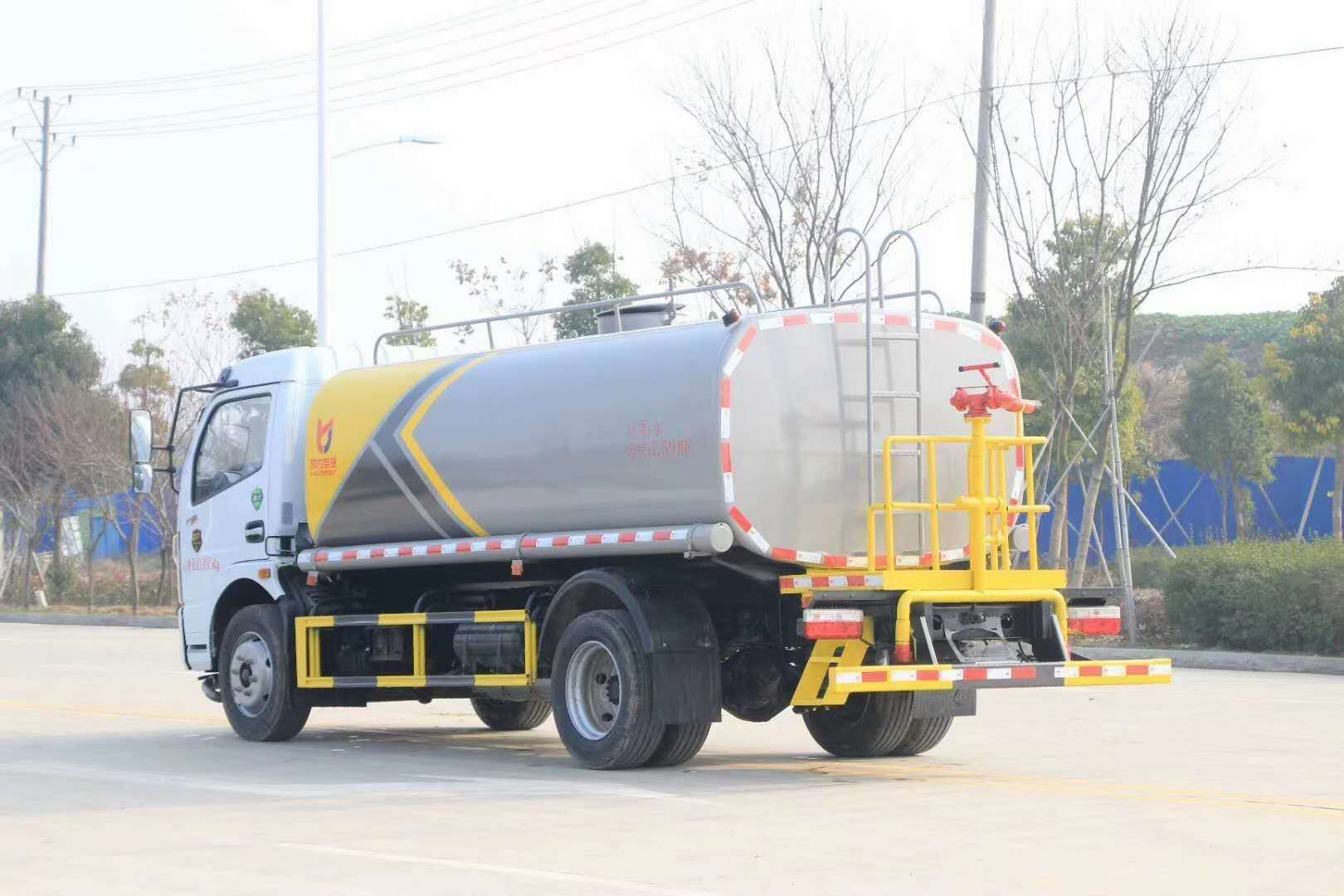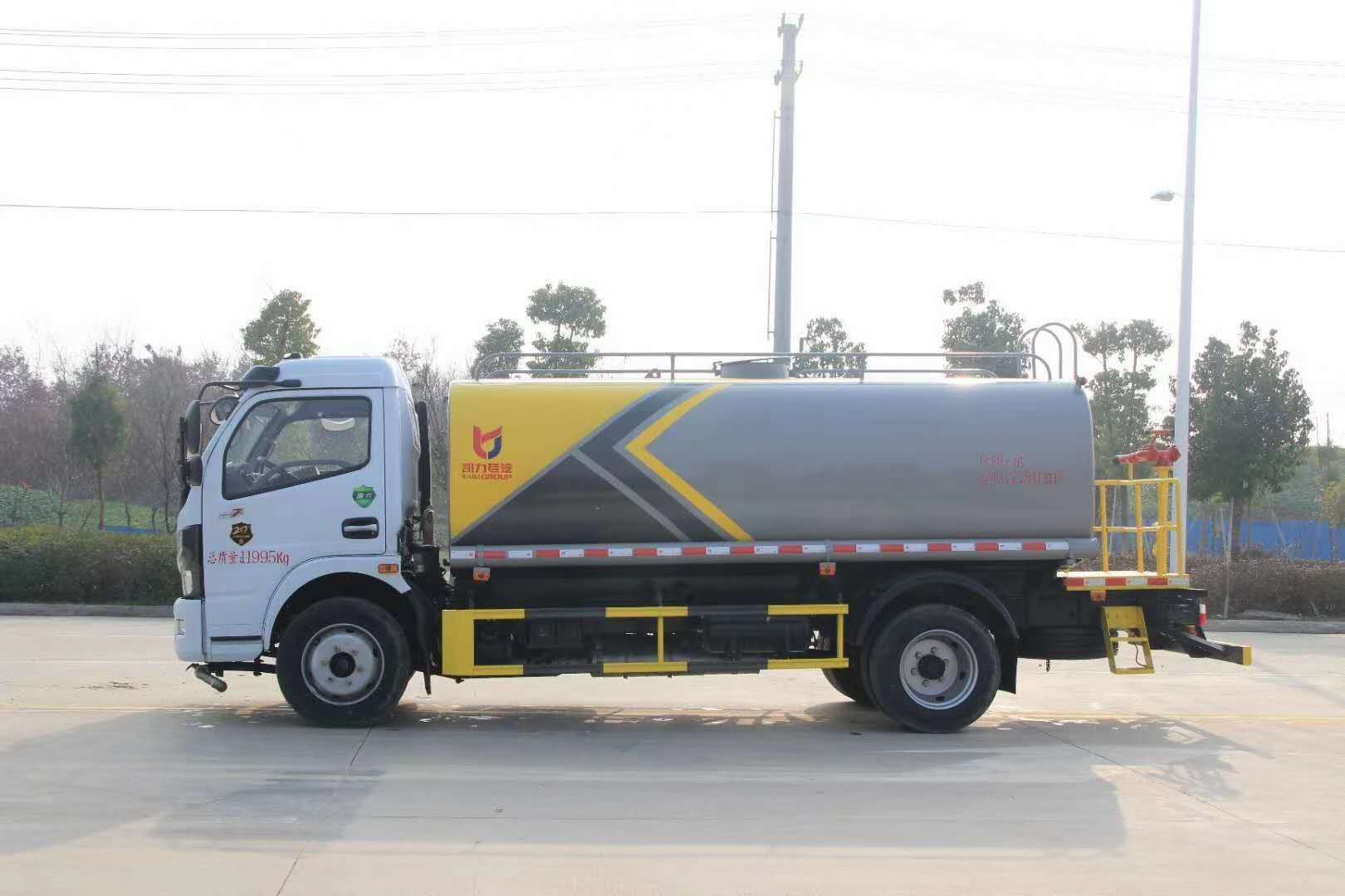 前噴后灑,前裝有鴨形噴嘴或圓頭沖嘴,后面裝有圓柱開灑水噴嘴或蓮蓬頭噴嘴,后部有一工作平臺,裝配有高壓水炮。后部還可裝8個(gè)噴嘴(選裝)噴水器一般用于沖洗街道。